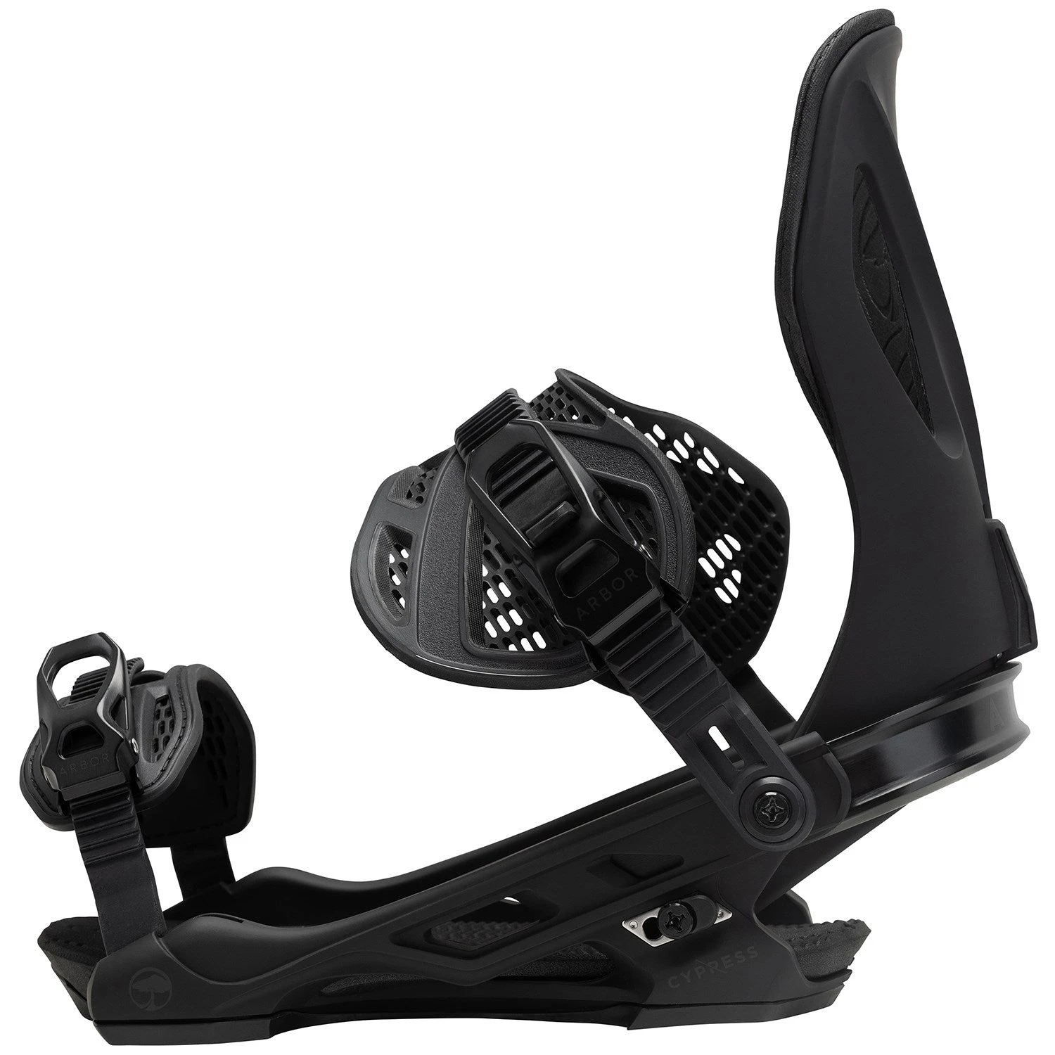The Cypress is a freeride design for riders who like their lines a little more rowdy and their playgrounds bigger. Arbor created a powerful binding by stiffening their exclusive System X Baseplate with double the fiberglass; adding a lighter, stiffer and more laterally supportive highback; and beefing up the outsole. That translates into high-speed, big–mountain performance.