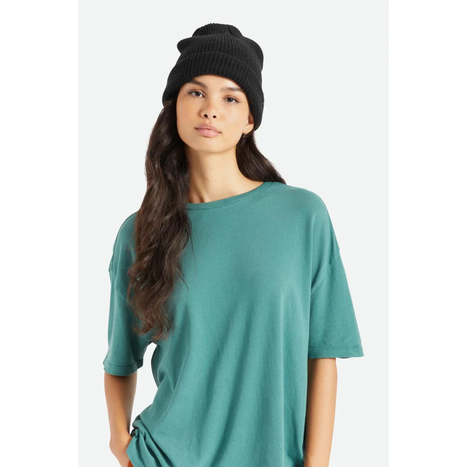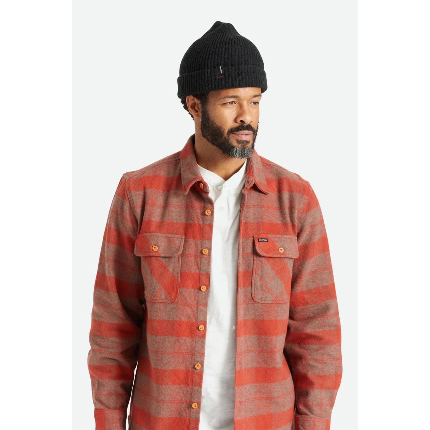 A unisex standard acrylic 1×1 rib-knit beanie with a Brixton woven label at cuff. Made in the U.S.A