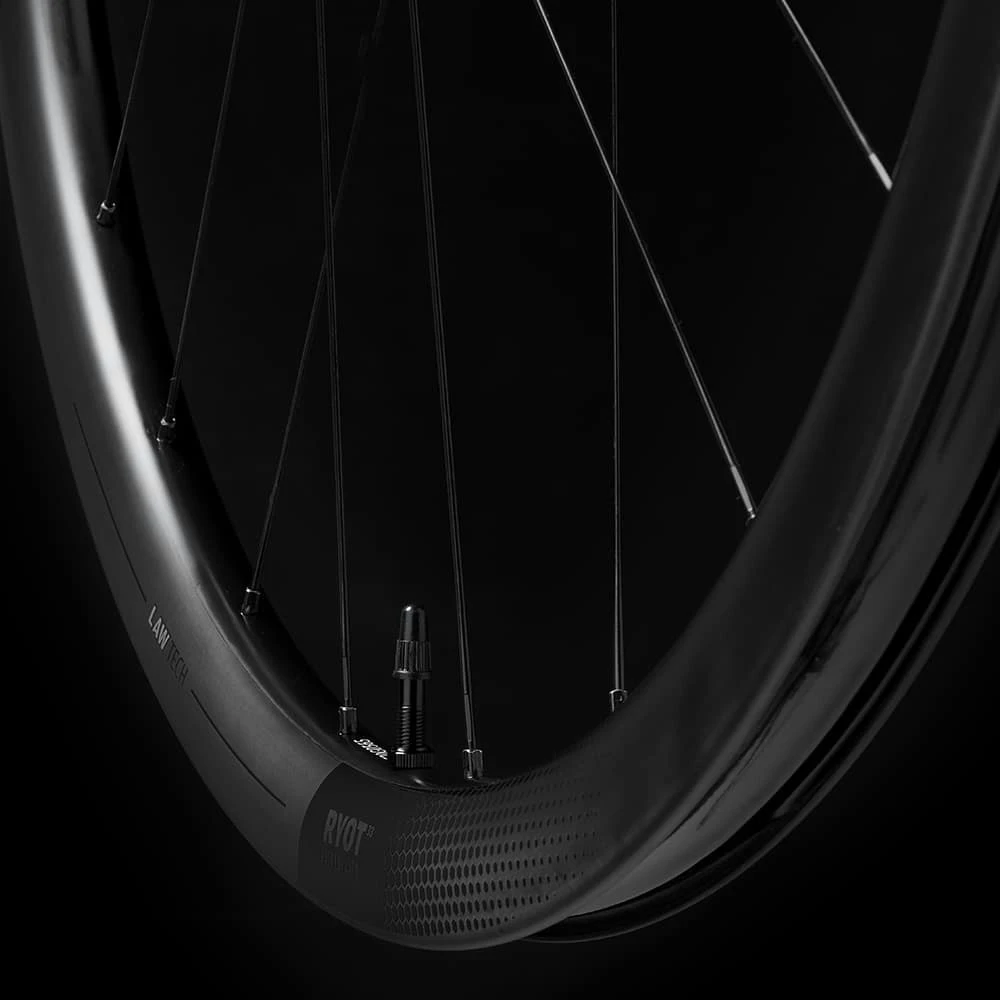 A key feature of the RYOT33 is the new LAW Tech aerodynamic profile with 33mm depth, 30mm external and 21mm internal rim widths. LAW is short for ‘Laminar Airflow Wing’ and has been specifically developed to deliver better aerodynamics when using wider tires by creating a smooth airflow over the rim/tire interface.