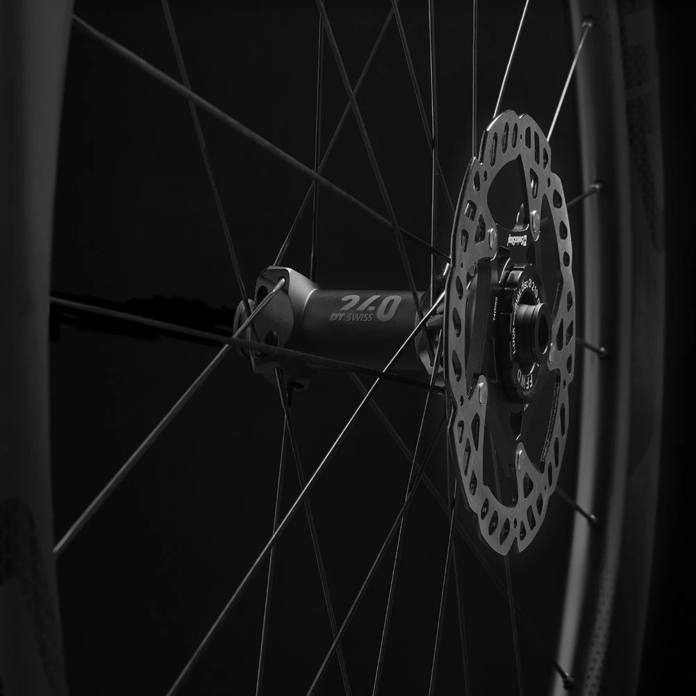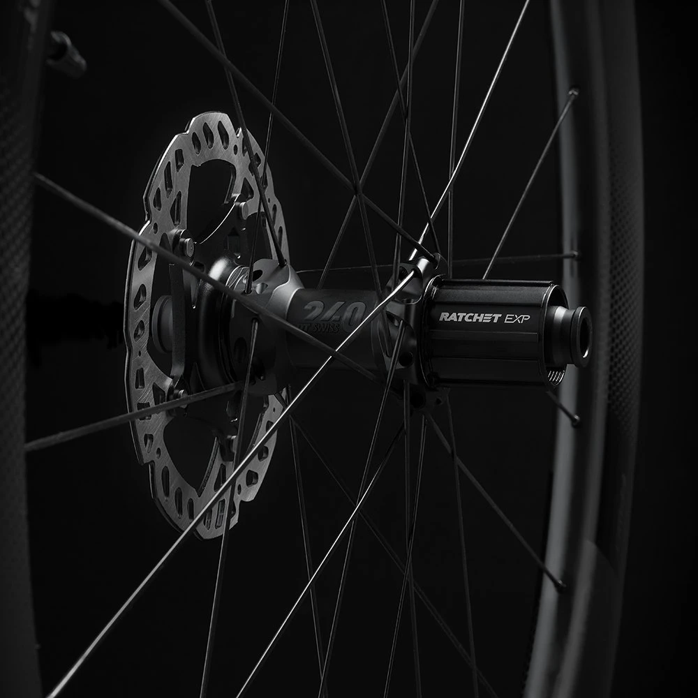 The RYOT77 is built with DT Swiss’ newest DT240 EXP straight pull center-lock hubs featuring a 36 tooth star ratchet system offering 10 degrees of engagement for quick and crisp shifting, DT Swiss Aerolite and Competition spokes, DT Swiss brass nipples and 12mm thru axle (12/100mm, 12/142mm) as standard.