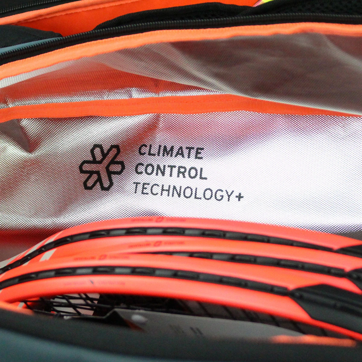 The Head Tour Team Extreme Supercombi 9 Pack Racquet Bag delivers stylish performance to keep your gear protected. The Supercombi has room for up to 9 racquets across its 2 main compartments. Head Climate Control Technology (CCT+) in one of the main compartments protects your frames and strings from the elements so that your gear is ready to perform when they come out of the bag. Additional accessory pockets keep you organized and the 2-way carry system lets you carry the bag comfortably.