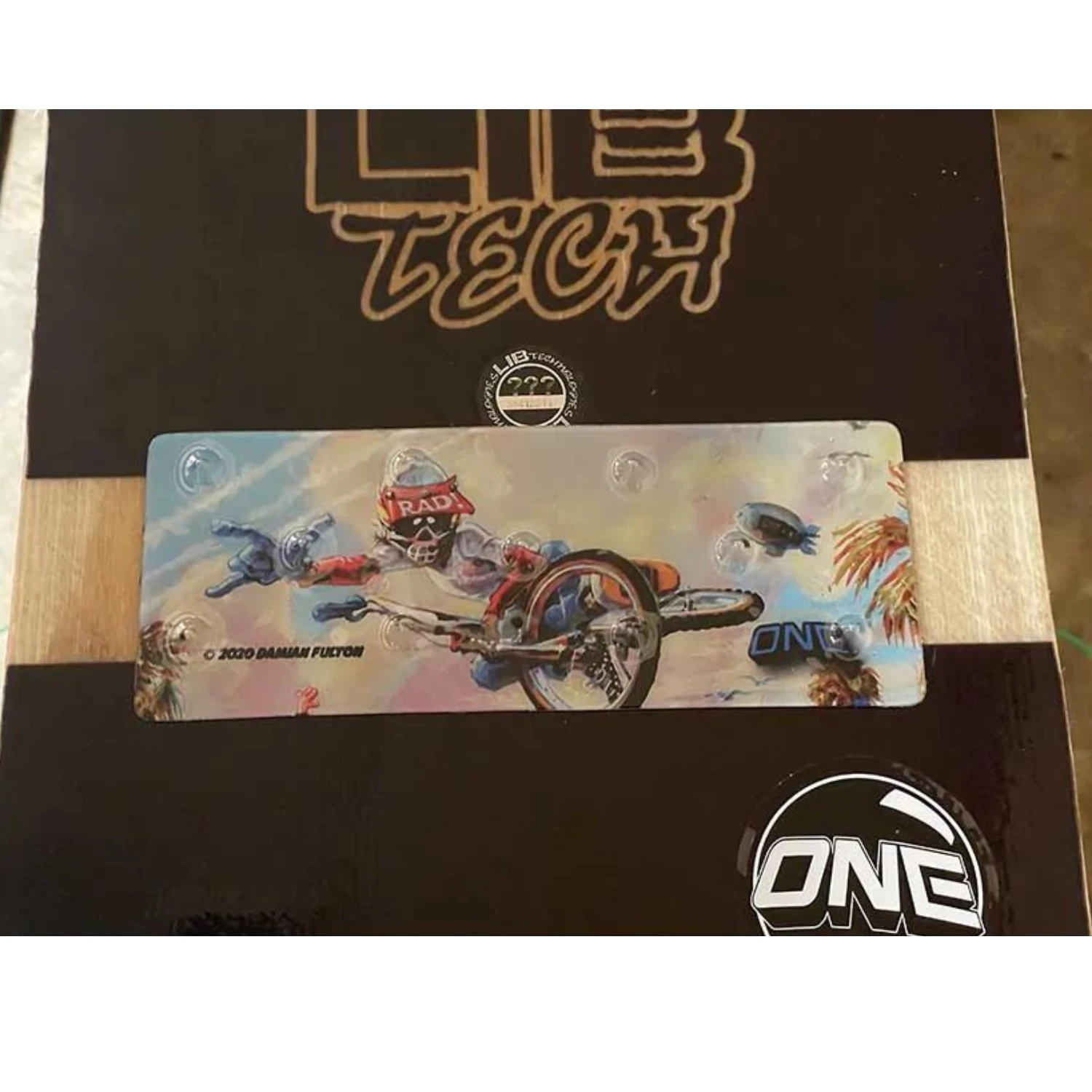 The Radical Rick Snowboard stomp pad features BMX artwork from legendary artist Damian Fulton who developed the character in the 1980’s. The take off on Radical Rick was featured in the early 90’s on Matt Cummins pro model with Lib Tech snowboards. in 2020 Damian was asked to create new artwork for MC’s new pro model and Radical Rick was reborn.Â