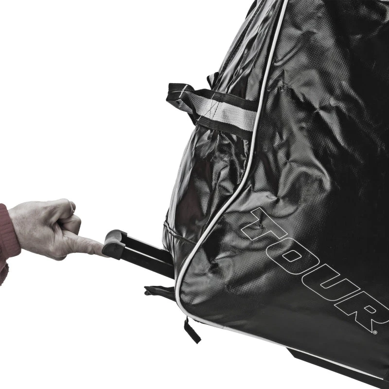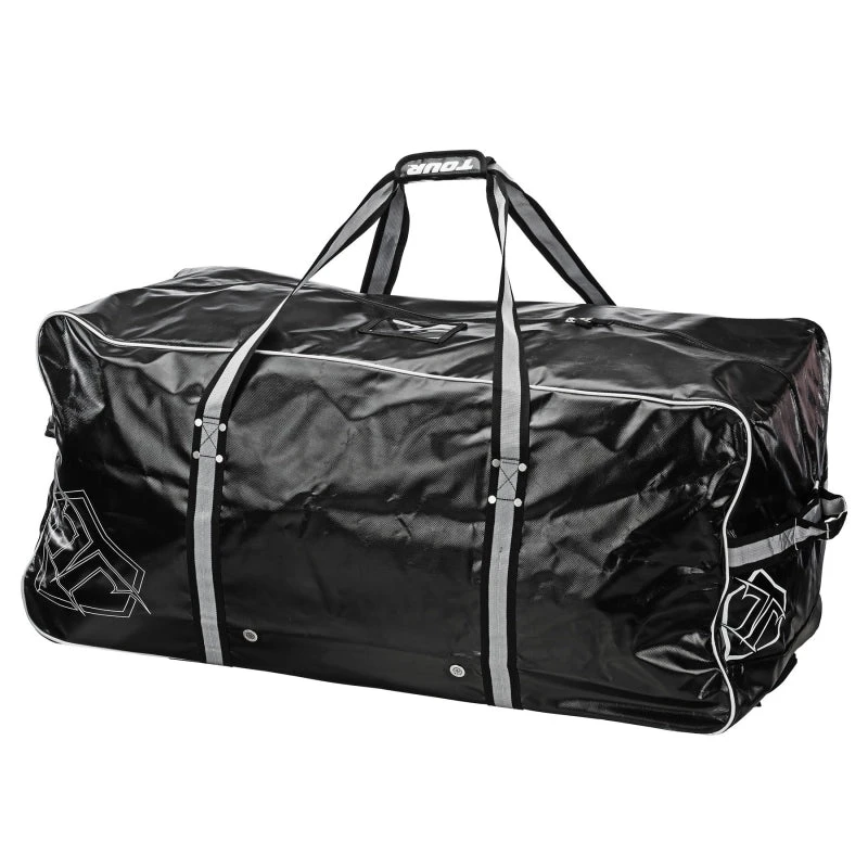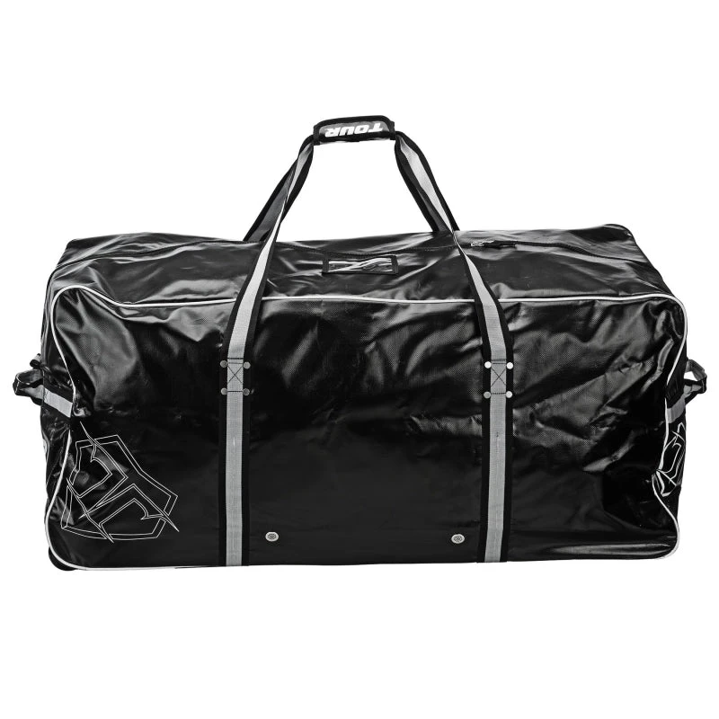 The Tour Team Series Bag is constructed from heavy duty, lightweight, water resistant Tarpaulin material. The bag has a large main compartment and internal zippered stash pocket with multiple venting air grommets for maximum airflow